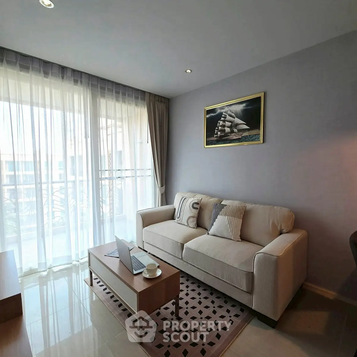 Fully furnished 1 bedroom, 1 bathroom condo for sale with a floorsize of 35 squaremeters, located on the 8th floor, at Atlantis Condo Resort building, in the popular Bang Lamung district. Please contact us to schedule a viewing.