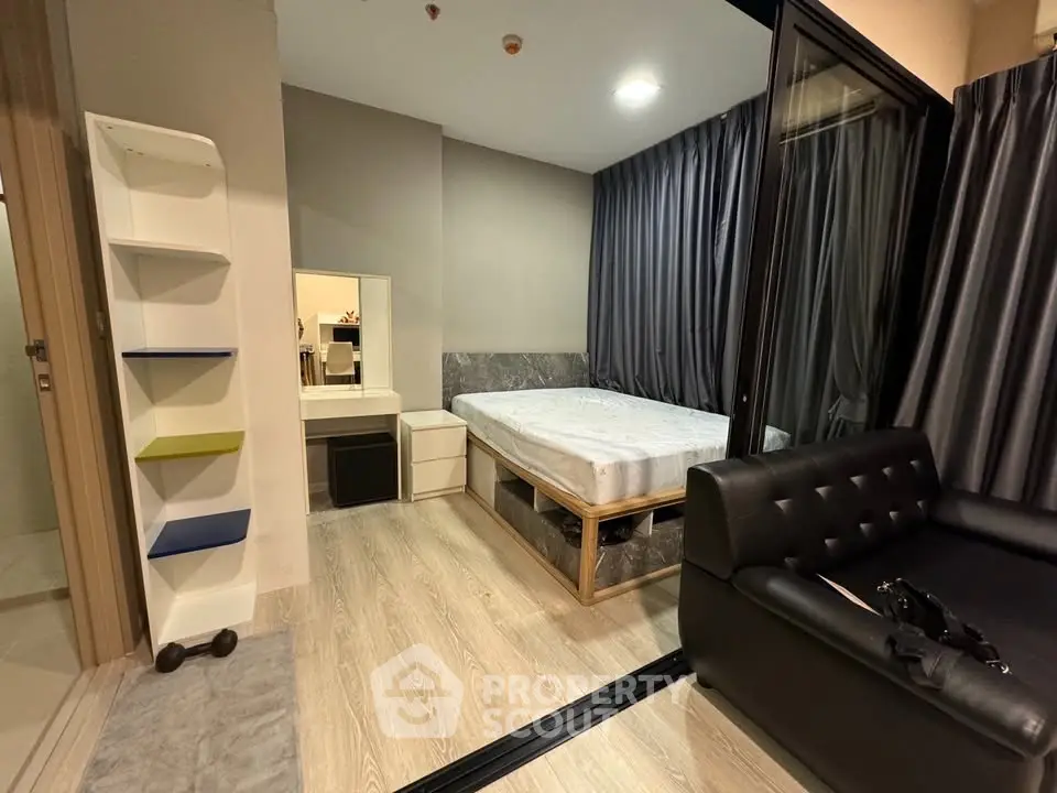 Fully furnished 1 bedroom, 1 bathroom condo for sale with a floorsize of 28.5 squaremeters, located on the 17th floor, at Condolette Midst Rama 9 building, in the popular Huai Khwang district near MRT Phra Ram 9 and near ARL Makkasan. Please contact us to schedule a viewing.
