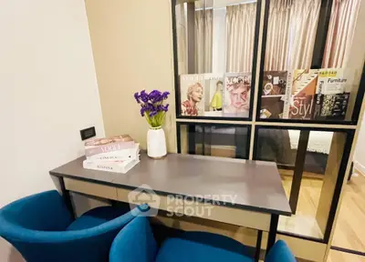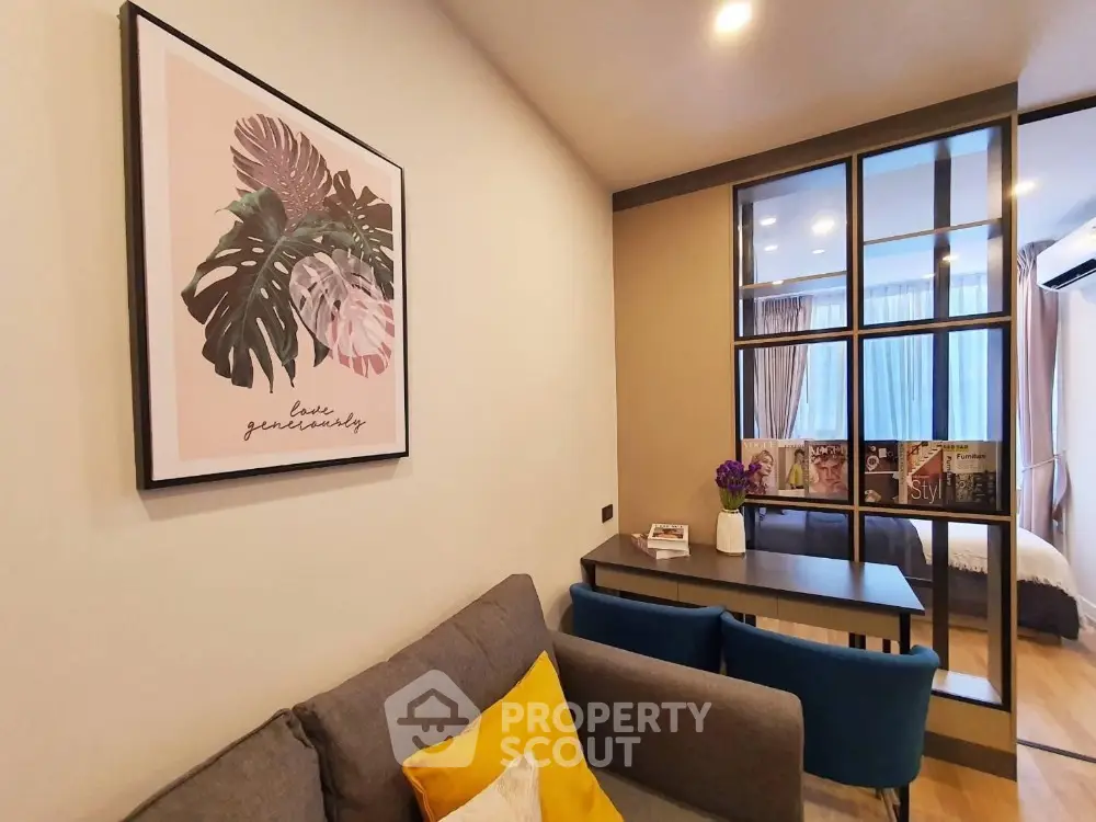 1 bedroom, 1 bathroom condo for rent with a floorsize of 25.1 squaremeters, located on the 1st floor, at Groove Ratchada Rama 9 building, in the popular Din Daeng district near MRT Phra Ram 9 and near ARL Makkasan. Please contact us to schedule a viewing.
