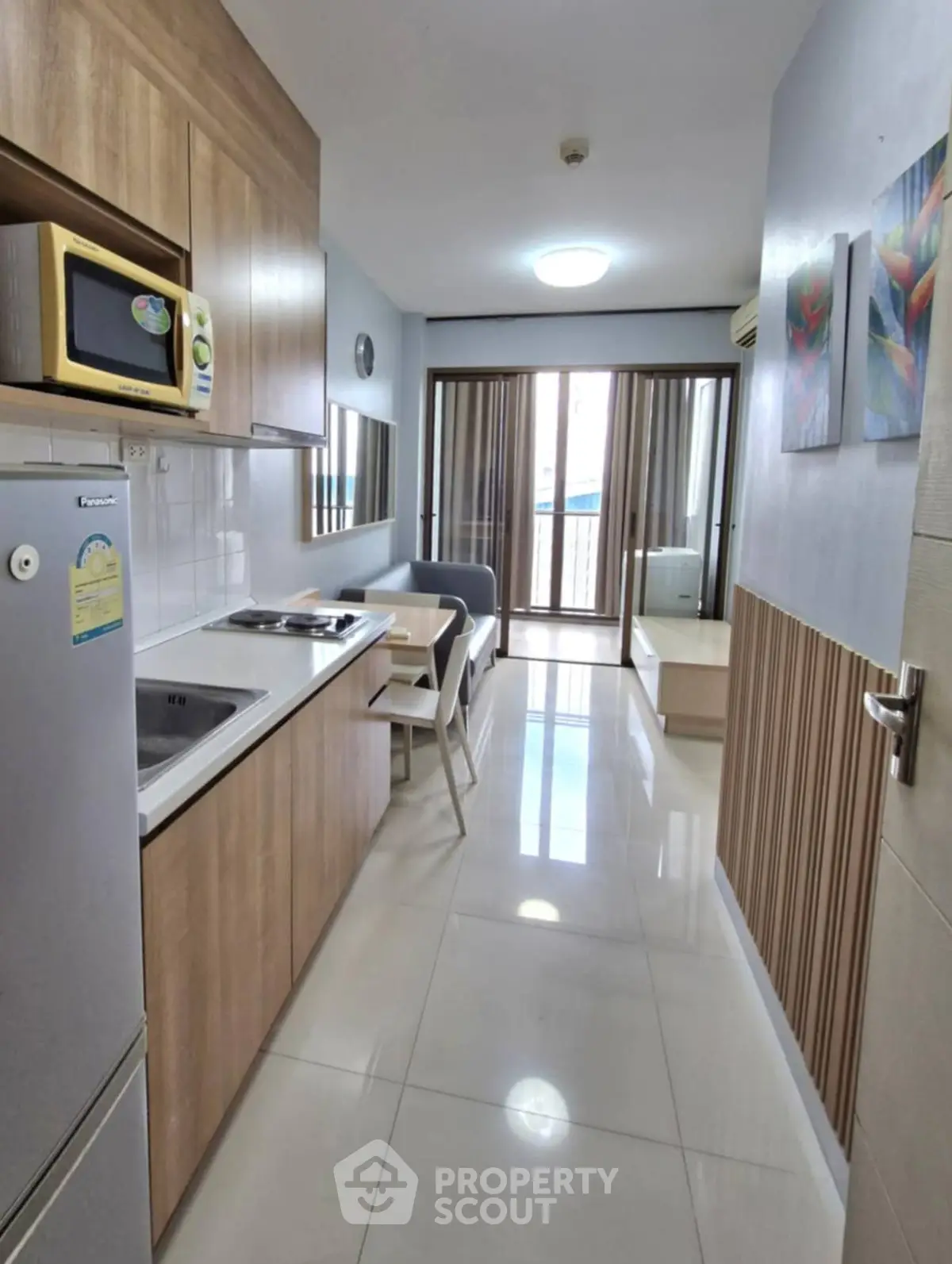 Modern 1-bedroom 1-bathroom condominium from the 9th floor of The Ideo Mix Sukhumvit 103 building, in the international Bangna district, close to BTS Udom Suk, perfect for an urban lifestyle.