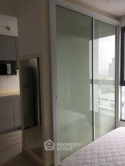 Modern 1-studio bedroom 1-bathroom condominium on the 19th floor of Ideo Mobi Sukhumvit 81 building, in the international Khlong Toei district, close to BTS On Nut, perfect for an urban lifestyle.