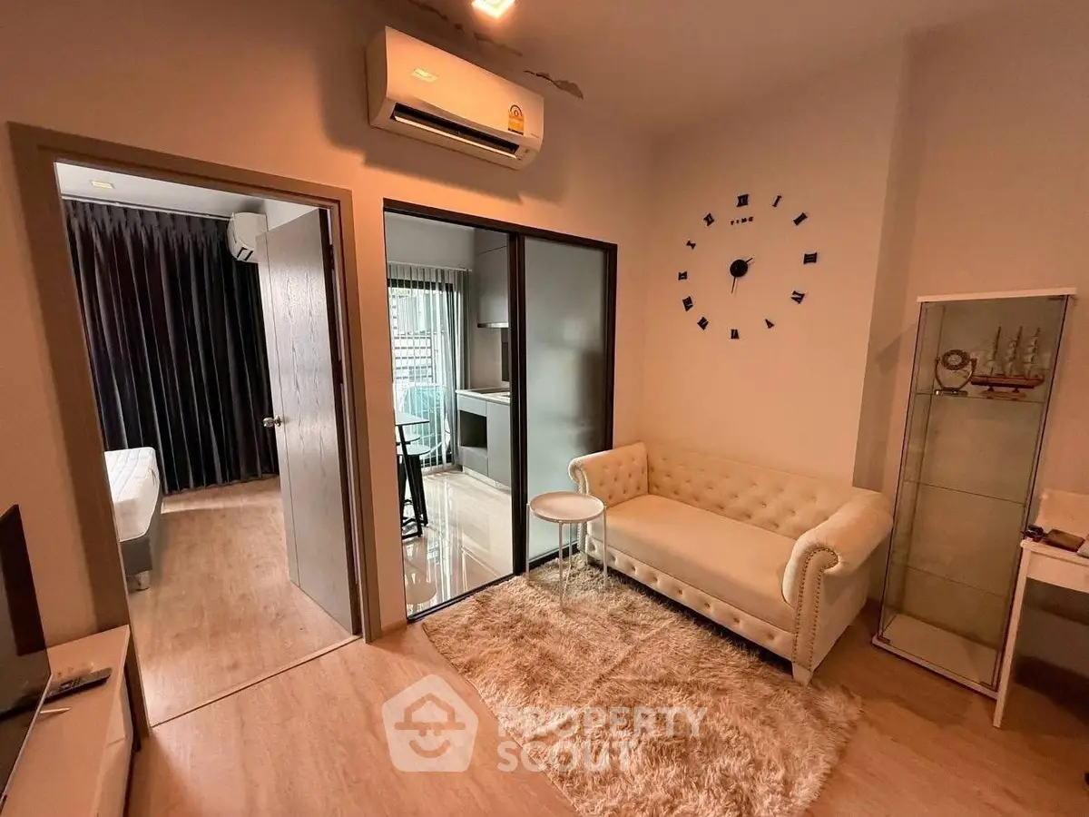 Fully furnished 1 bedroom, 1 bathroom condo for rent with a floorsize of 31.42 squaremeters, located on the 5th floor, at Ideo New Rama 9 building, in the popular Bang Kapi district near ARL Ramkhamhaeng. Please contact us to schedule a viewing.