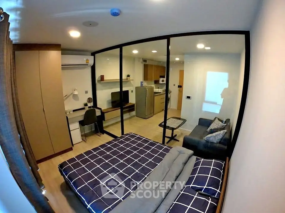 Fully furnished 1 bedroom, 1 bathroom condo for rent with a floorsize of 26 squaremeters, located on the 6th floor, at Kave Condo building, in the popular Khlong Luang district. Please contact us to schedule a viewing.