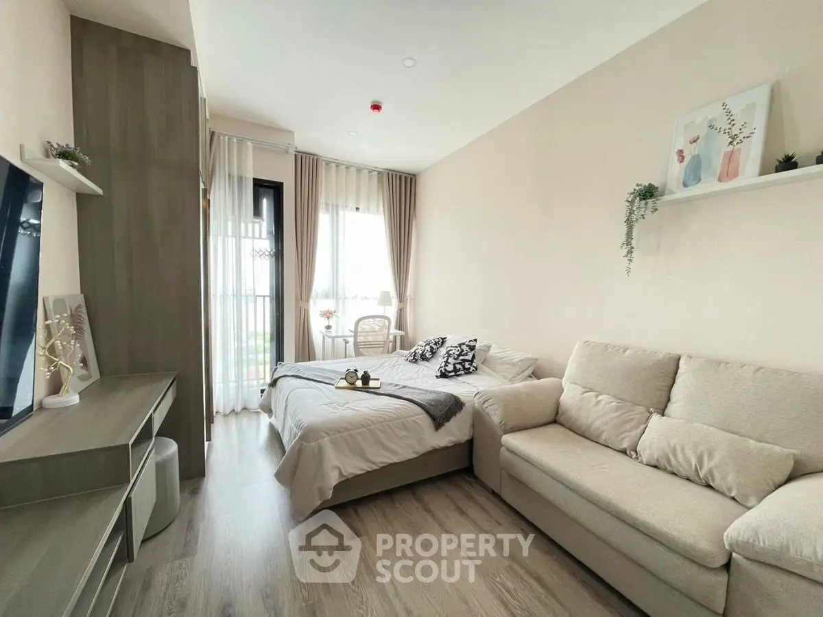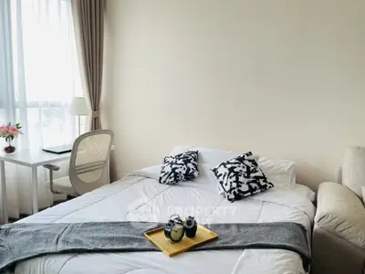 Modern 1-bedroom 1-bathroom condominium on the 27th floor of KnightsBridge Prime - Onnut building, in the international Watthana district, close to BTS On Nut, perfect for an urban lifestyle.