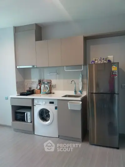 Modern 1-bedroom 1-bathroom condominium on the 12th-A floor of Life Sukhumvit 62 building, in the international Phra Khanong district, close to BTS Bang Chak, perfect for an urban lifestyle.