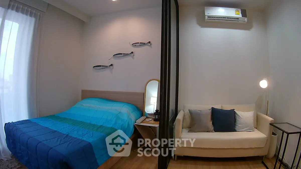 Fully furnished 1 bedroom, 1 bathroom condo for rent with a floorsize of 28 squaremeters, located on the 8th floor, at M Jatujak building, in the popular Chatuchak district near BTS Saphan Khwai and near MRT Kamphaeng Phet. Please contact us to schedule a viewing.
