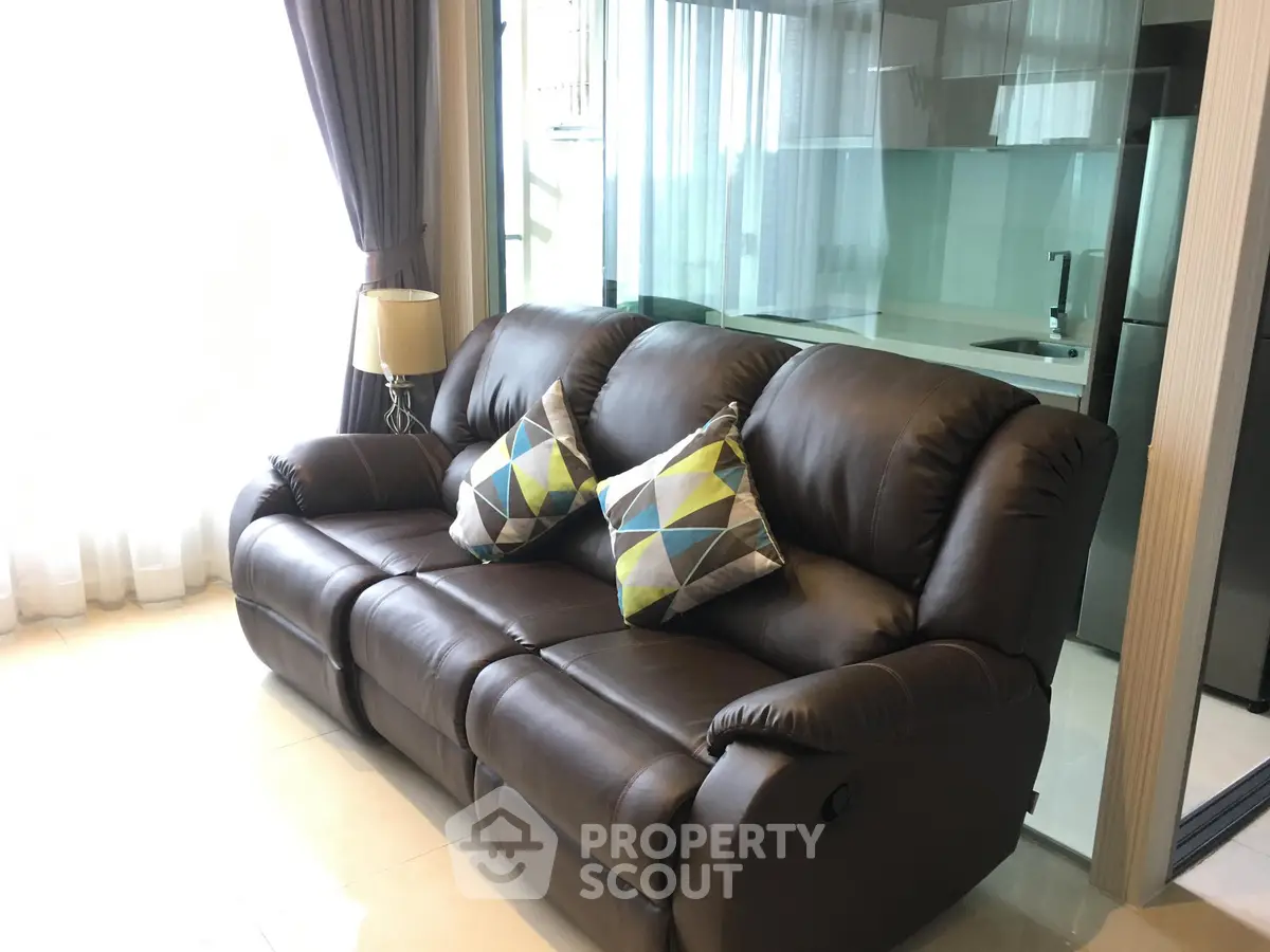 Modern 1-bedroom 1-bathroom condominium on the 14th floor of Mayfair Place Sukhumvit 50 building, in the international Khlong Toei district, close to BTS On Nut, perfect for an urban lifestyle.