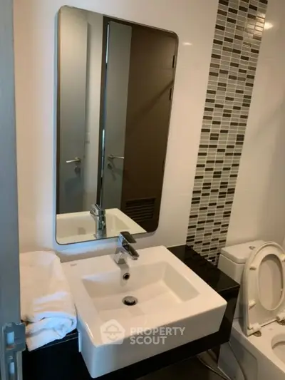 Modern 1-bedroom 1-bathroom condominium on the 8th floor of Mirage Sukhumvit27 building, in the international Khlong Toei district, close to BTS Asok, perfect for an urban lifestyle.