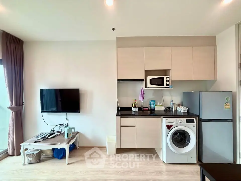Fully furnished 1 bedroom, 1 bathroom condo for rent with a floorsize of 26.5 squaremeters, located on the 22nd floor, at Noble Revolve Ratchada 2 building, in the popular Huai Khwang district near MRT Thailand Cultural Centre. Please contact us to schedule a viewing.