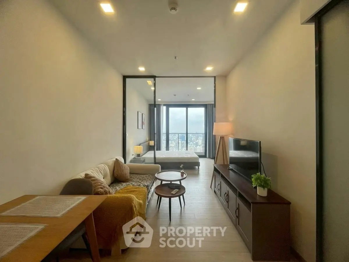 Fully furnished 1 bedroom, 1 bathroom condo for rent with a floorsize of 35 squaremeters, located on the 54th floor, at One 9 Five Asoke - Rama 9 building, in the popular Huai Khwang district near MRT Phra Ram 9 and near ARL Makkasan. Please contact us to schedule a viewing.