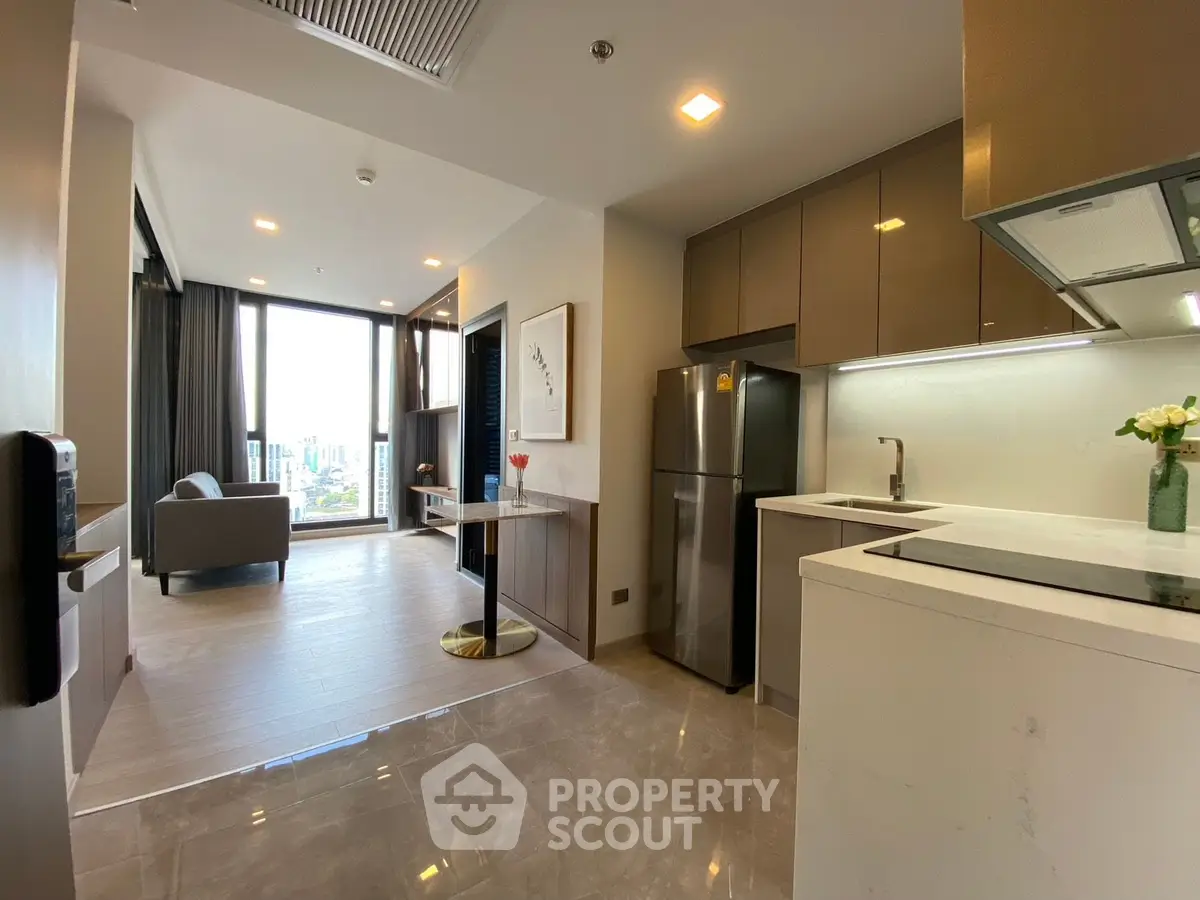 Fully furnished 1 bedroom, 1 bathroom condo for rent with a floorsize of 36 squaremeters, located on the 34th floor, at One 9 Five Asoke - Rama 9 building, in the popular Huai Khwang district near MRT Phra Ram 9 and near ARL Makkasan. Please contact us to schedule a viewing.
