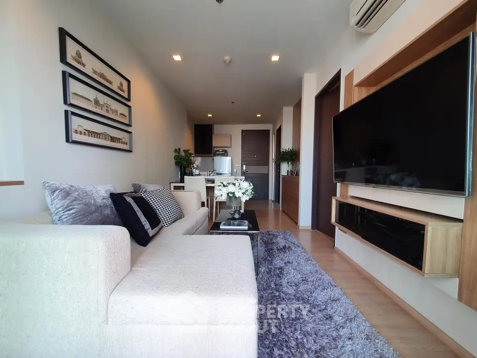 Fully furnished 1 bedroom, 1 bathroom condo for rent with a floorsize of 45 squaremeters, located on the 11th floor, at Rhythm Sathorn building, in the popular Sathon district near BTS Saphan Taksin and near MRT Sam Yan. Please contact us to schedule a viewing.