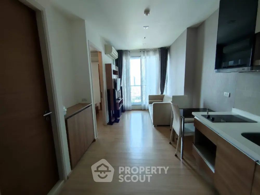 Fully furnished 1 bedroom, 1 bathroom condo for rent with a floorsize of 35.23 squaremeters, located on the 25th floor, at Rhythm Sukhumvit 50 building, in the popular Khlong Toei district near BTS On Nut. Please contact us to schedule a viewing.