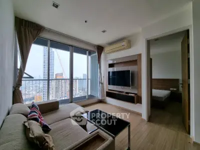 Fully furnished 1 bedroom, 1 bathroom condo for rent with a floorsize of 45 squaremeters, located on the 32nd floor, at Rhythm Sukhumvit 50 building, in the popular Khlong Toei district near BTS On Nut. Please contact us to schedule a viewing.