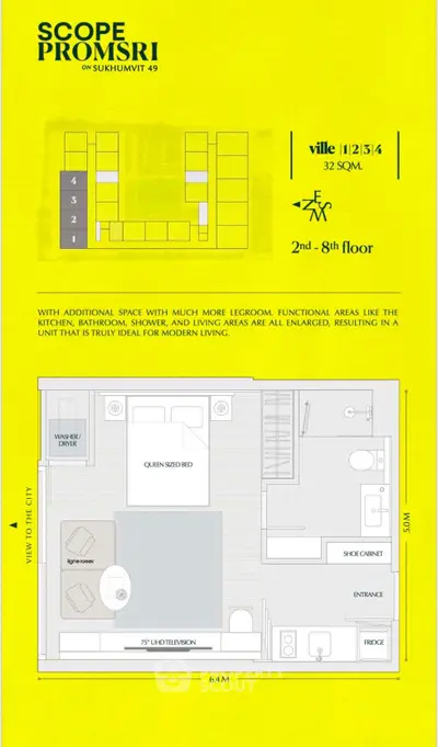 Fully furnished pet friendly 1 bedroom, 1 bathroom condo for rent with a floorsize of 32 squaremeters, located on the 6th floor, at SCOPE Promsri building, in the popular Watthana district near BTS Phrom Phong. Please contact us to schedule a viewing.
