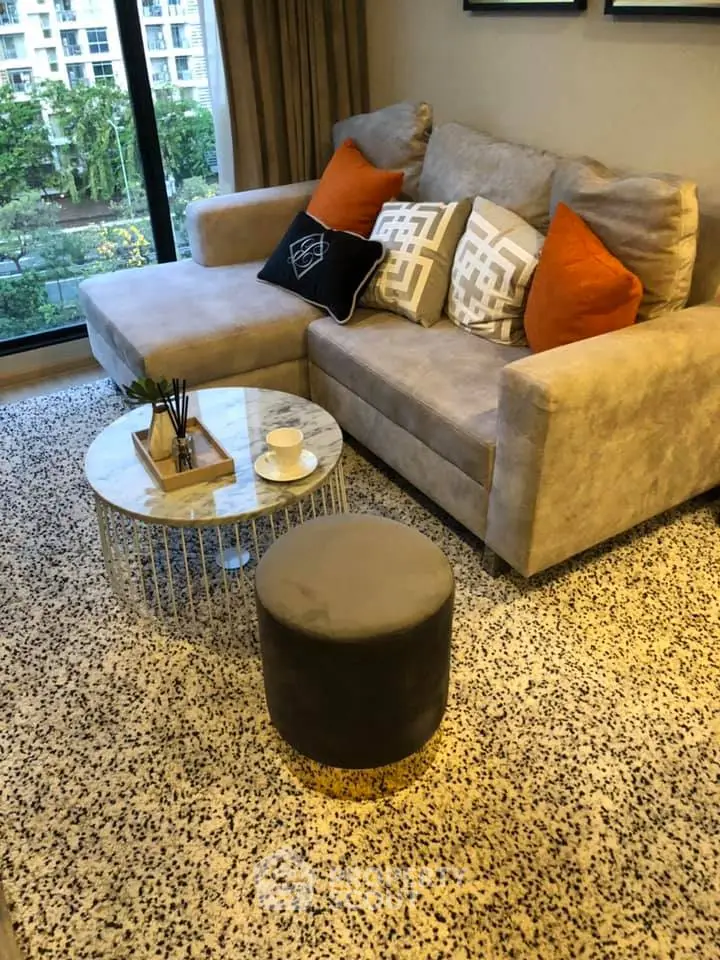 Modern 1-bedroom 1-bathroom condominium on the 8th floor of The Serio Sukhumvit 50 building, in the Phra Khanong district, close to BTS On Nut, perfect for an urban lifestyle.