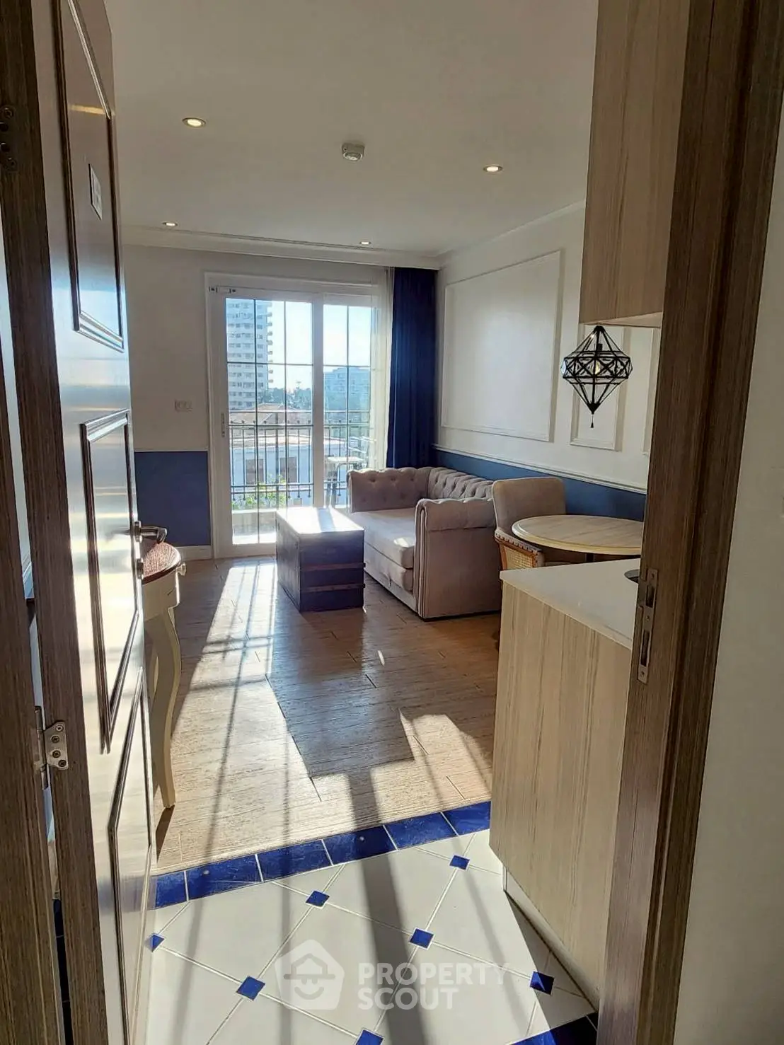 Fully furnished 1 bedroom, 1 bathroom condo for rent with a floorsize of 35 squaremeters, located on the 6th floor, at Seven Seas Côte d'Azur building, in the popular Sattahip district. Please contact us to schedule a viewing.