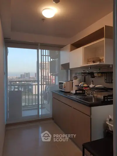 Modern 1-bedroom 1-bathroom condominium from the 19th floor of The Supalai Veranda Rama 9 building, in the Huai Khwang district, close to MRT Phra Ram 9, perfect for an urban lifestyle.