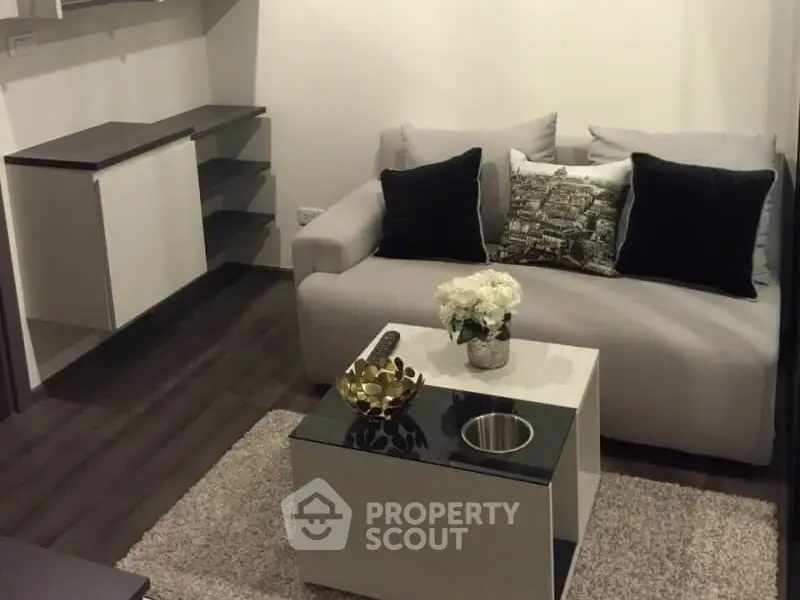 Fully furnished 1 bedroom, 1 bathroom condo for rent with a floorsize of 28 squaremeters, located on the 12th floor, at The Base Park East Sukhumvit 77 building, in the popular Watthana district near BTS On Nut. Please contact us to schedule a viewing.
