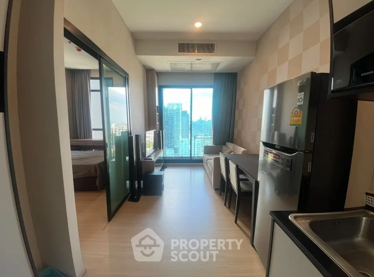 Fully furnished 1 bedroom, 1 bathroom condo for rent with a floorsize of 30 squaremeters, located on the 21st floor, at The Capital Ekamai - Thonglor building, in the popular Huai Khwang district near ARL Ramkhamhaeng. Please contact us to schedule a viewing.