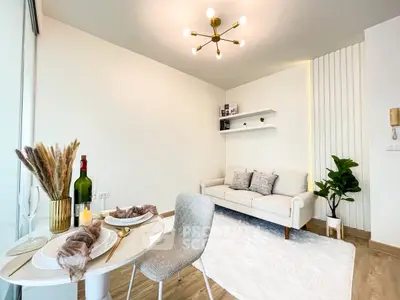 Fully furnished 1 bedroom, 1 bathroom condo for sale with a floorsize of 32.45 squaremeters, located on the 6th floor, at The IRIS Rama 9 - Srinagarindra building, in the popular Suan Luang district near ARL Hua Mak. Please contact us to schedule a viewing.