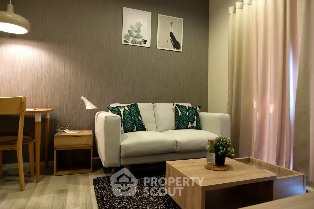 Modern 1-bedroom 1-bathroom 34 sqm condo on 9th floor in the international Khlong Toei district, close to BTS Surasak, perfect for an urban lifestyle.