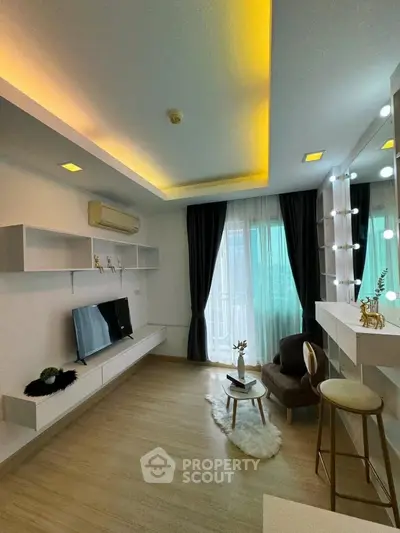 Fully furnished 1 bedroom, 1 bathroom condo for rent with a floorsize of 31 squaremeters, located on the 28th floor, at Thru Thonglor building, in the popular Huai Khwang district. Please contact us to schedule a viewing.