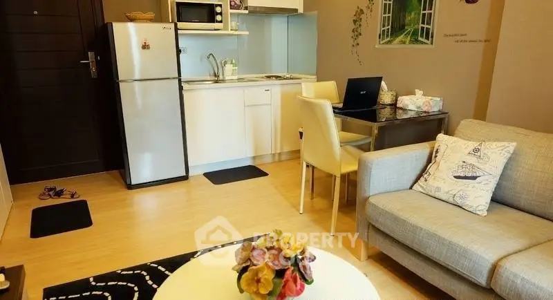 Fully furnished 1 bedroom, 1 bathroom condo for rent with a floorsize of 31 squaremeters, located on the 22nd floor, at Thru Thonglor building, in the popular Huai Khwang district. Please contact us to schedule a viewing.