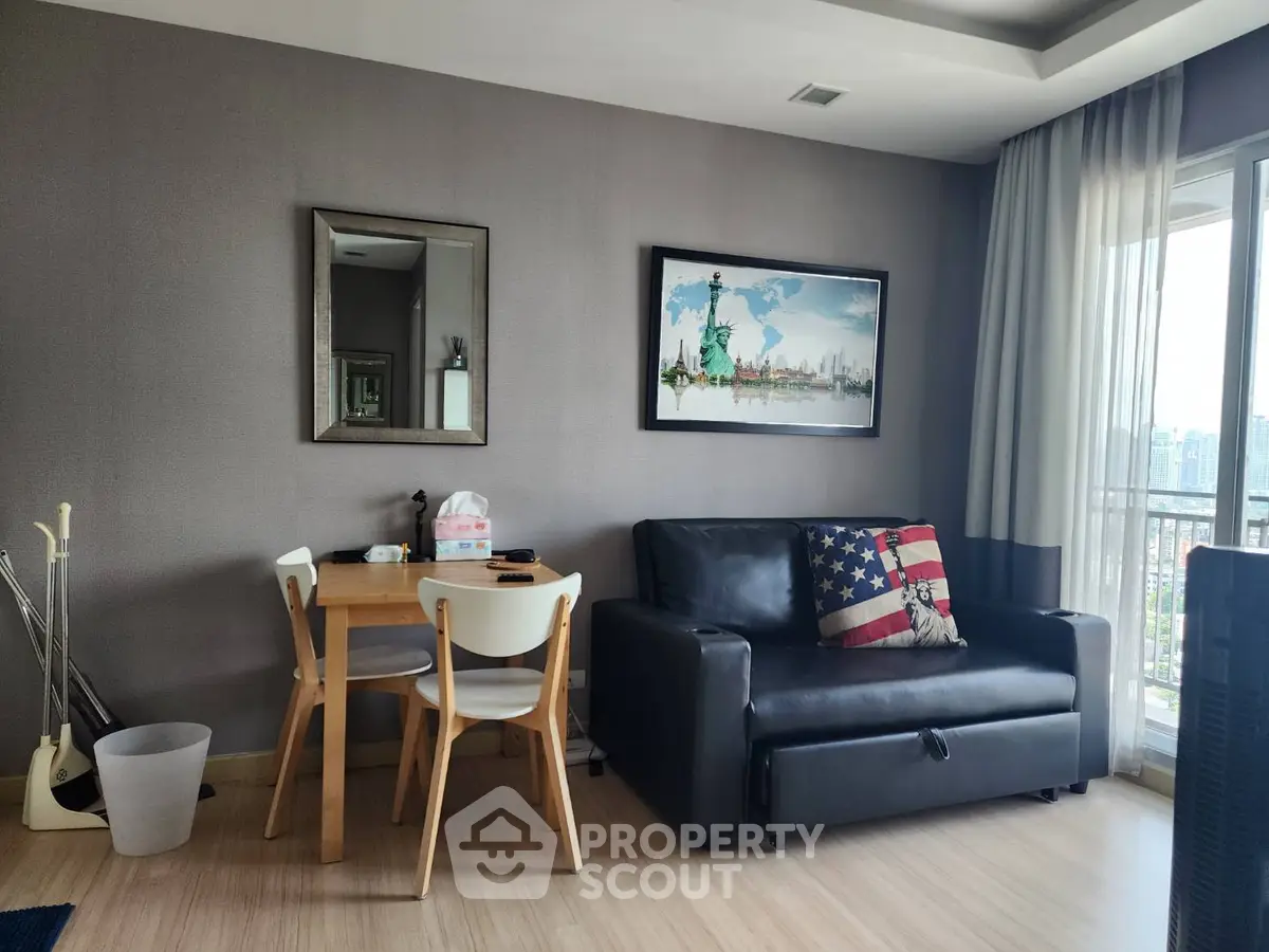 Fully furnished 1 bedroom, 1 bathroom condo for rent with a floorsize of 31 squaremeters, located on the 23rd floor, at Thru Thonglor building, in the popular Huai Khwang district. Please contact us to schedule a viewing.