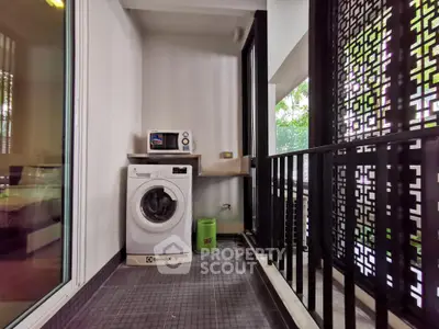 Modern 1-bedroom 1-bathroom condominium from the 2nd floor of Tree Condo Ekkamai building, in the international Khlong Toei district, close to BTS Ekkamai, perfect for an urban lifestyle.