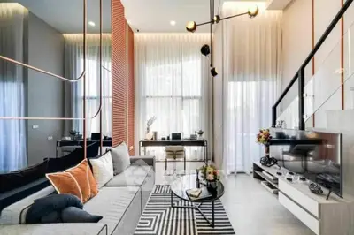 Fully furnished pet friendly 1 bedroom, 1 bathroom duplex for sale with a floorsize of 34.8 squaremeters, located on the 15th floor, at Origin Plug & Play Sirindhorn Station building, in the popular Bang Phlat district near MRT Sirindhorn. Please contact us to schedule a viewing.