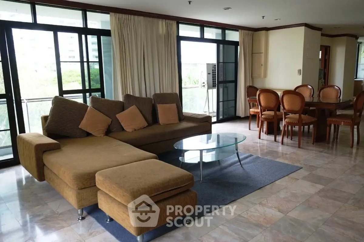 Fully furnished 2 bedrooms, 2 bathrooms condo for rent with a floorsize of 133 squaremeters, located on the 7th floor, at Baan Prompong Condominium building, in the popular Watthana district near BTS Asok, near MRT Phetchaburi and near ARL Makkasan. Please contact us to schedule a viewing.