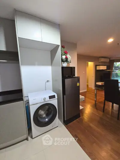 Fully furnished 2 bedrooms, 1 bathroom condo for sale with a floorsize of 61 squaremeters, located on the 7th floor, at Belle Grand Rama 9 building, in the popular Huai Khwang district near MRT Phra Ram 9 and near ARL Makkasan. Please contact us to schedule a viewing.