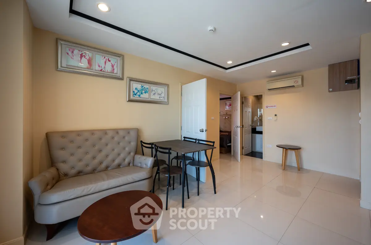 Fully furnished 2 bedrooms, 1 bathroom condo for rent / sale with a floorsize of 50 squaremeters, in the popular Bang Lamung district. Please contact us to schedule a viewing.