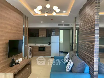 Fully furnished 2 bedrooms, 1 bathroom condo for rent with a floorsize of 52.6 squaremeters, located on the 30th floor, at Dusit Grand Condo View building, in the popular Bang Lamung district. Please contact us to schedule a viewing.
