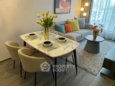 Fully furnished 2 bedrooms, 2 bathrooms condo for rent with a floorsize of 52 squaremeters, located on the 7th floor, at Ideo Mobi Sukhumvit 40 building, in the popular Khlong Toei district near BTS Ekkamai. Please contact us to schedule a viewing.