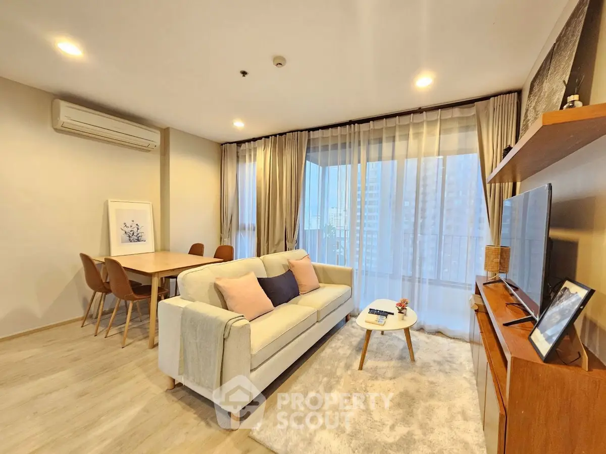Fully furnished 2 bedrooms, 1 bathroom condo for rent with a floorsize of 48 squaremeters, located on the 13th floor, at Ideo Q Ratchathewi building, in the popular Ratchathewi district near BTS Ratchathewi. Please contact us to schedule a viewing.
