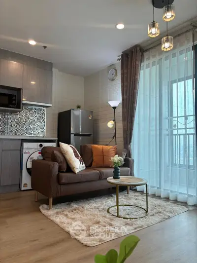 Fully furnished 2 bedrooms, 1 bathroom condo for rent with a floorsize of 45 squaremeters, located on the 23rd floor, at Ideo Sathorn-Thrapra building, in the popular Thon Buri district near BTS Pho Nimit. Please contact us to schedule a viewing.