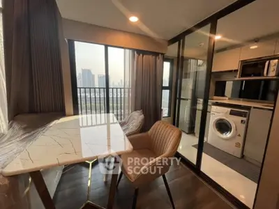Fully furnished 2 bedrooms, 1 bathroom condo for rent with a floorsize of 44 squaremeters, located on the 16th floor, at Knights Bridge Space Rama 9 building, in the popular Din Daeng district near MRT Phra Ram 9 and near ARL Makkasan. Please contact us to schedule a viewing.