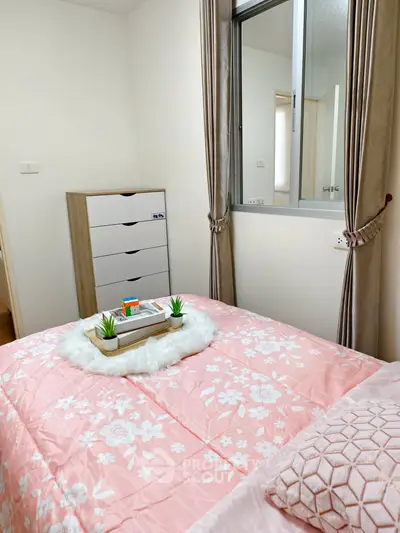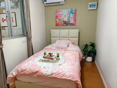 Fully furnished 2 bedrooms, 2 bathrooms condo for rent with a floorsize of 43 squaremeters, located on the 4th floor, at Lumpini Condo Town Romklao - Suvarnabhumi building, in the popular Lat Krabang district near ARL Latkrabang. Please contact us to schedule a viewing.