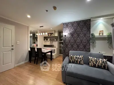 Fully furnished 2 bedrooms, 2 bathrooms condo for rent with a floorsize of 56 squaremeters, located on the 19th floor, at Lumpini Ville Chaeng Watthana - Pak Kret building, in the popular Pak Kret district. Please contact us to schedule a viewing.
