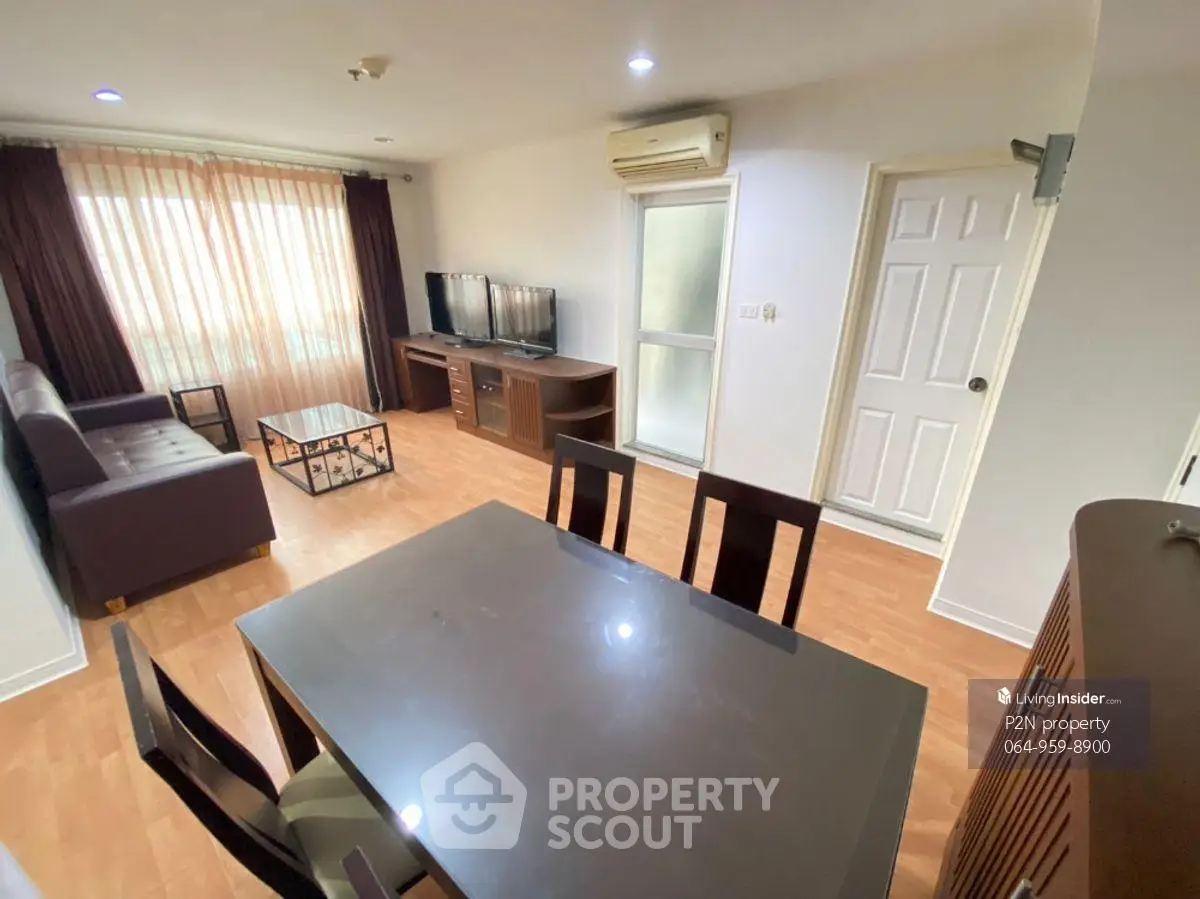 Fully furnished 2 bedrooms, 2 bathrooms condo for rent with a floorsize of 64 squaremeters, located on the 10th floor, at Lumpini Ville Ramkhamhaeng 44 building, in the popular Bang Kapi district. Please contact us to schedule a viewing.