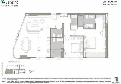 Charming 2 bedrooms, 3 bathrooms condo for sale with a floorsize of 108 squaremeters, located on the 10++ floor, at Muniq Phromphong building, in the popular Watthana district near BTS Phrom Phong, near MRT Queen Sirikit National Convention Centre and near ARL Makkasan. Please contact us to schedule a viewing.