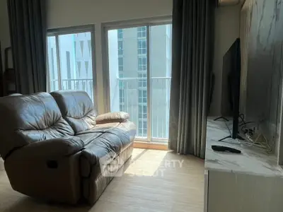 Fully furnished 2 bedrooms, 2 bathrooms condo for rent with a floorsize of 52 squaremeters, located on the 38th floor, at Noble Revolve Ratchada building, in the popular Huai Khwang district near MRT Thailand Cultural Centre. Please contact us to schedule a viewing.