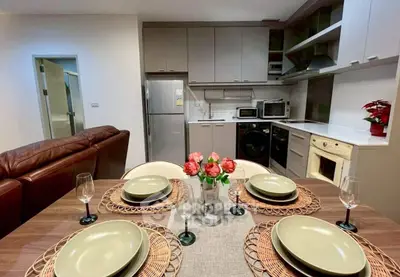 Fully furnished 2 bedrooms, 2 bathrooms condo for rent with a floorsize of 84.5 squaremeters, located on the 6th floor, at Noble Solo building, in the popular Watthana district. Please contact us to schedule a viewing.