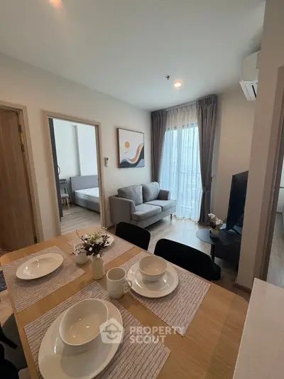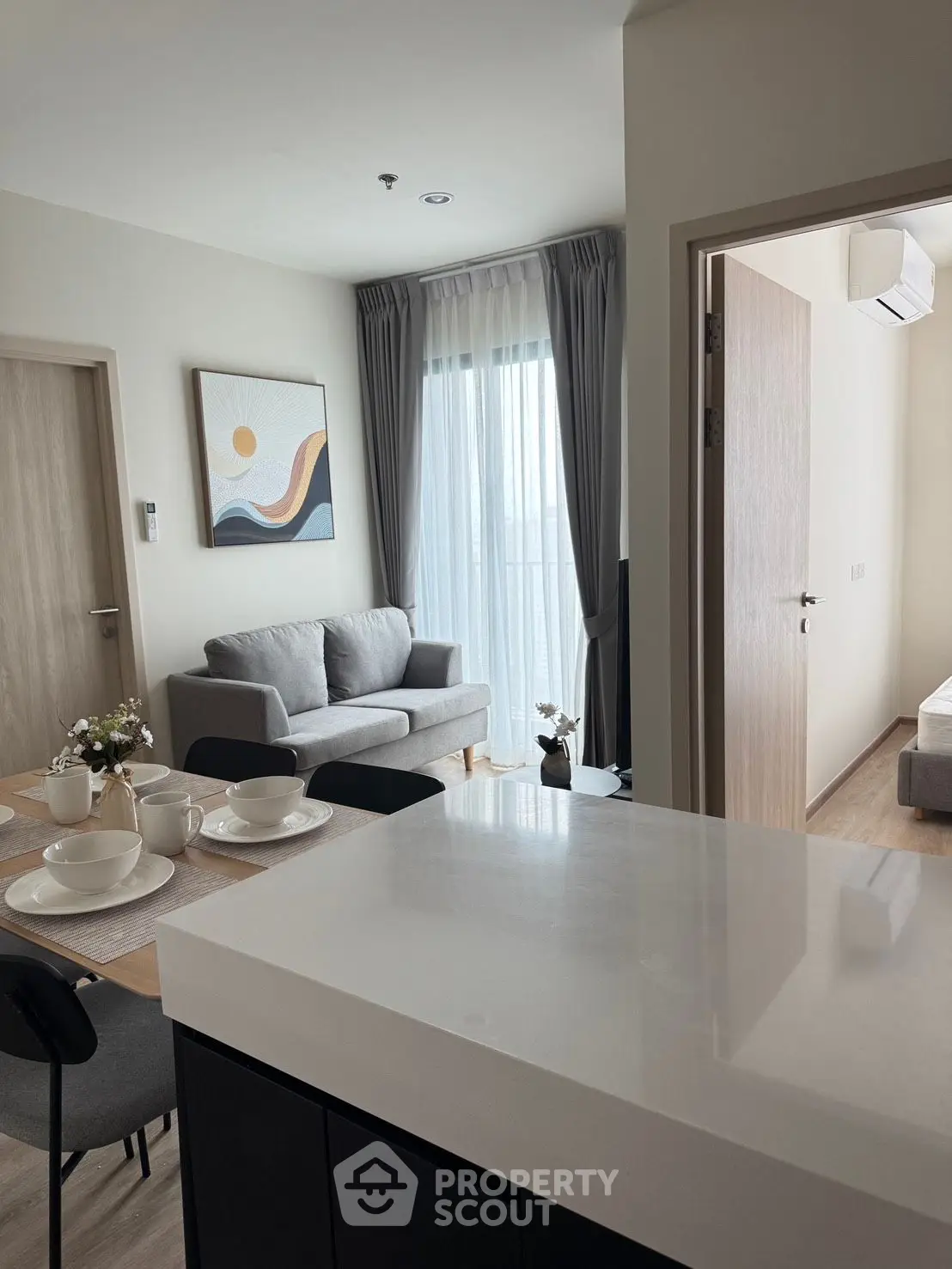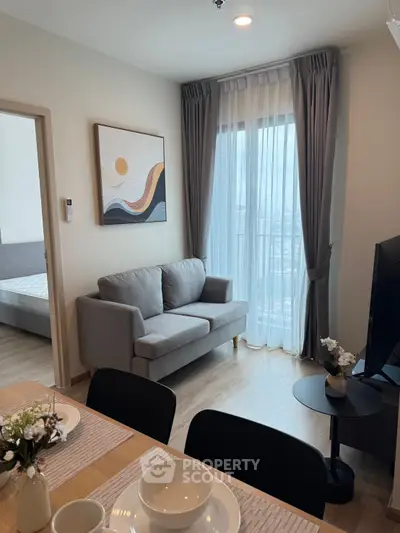 Fully furnished 2 bedrooms, 1 bathroom condo for rent with a floorsize of 40 squaremeters, located on the 18th floor, at Nue District R9 building, in the popular Huai Khwang district near MRT Phra Ram 9 and near ARL Makkasan. Please contact us to schedule a viewing.