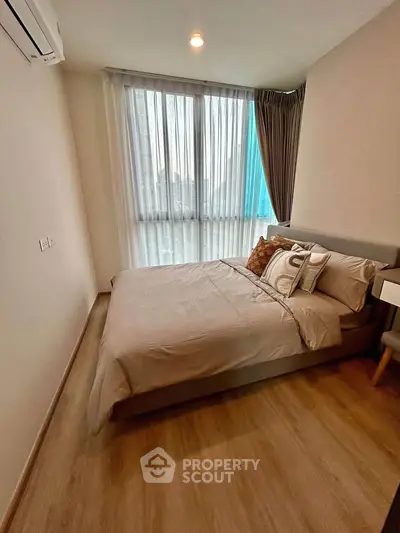 Fully furnished 2 bedrooms, 2 bathrooms condo for rent with a floorsize of 46.33 squaremeters, located on the 17th floor, at Nue District R9 building, in the popular Huai Khwang district near MRT Phra Ram 9 and near ARL Makkasan. Please contact us to schedule a viewing.