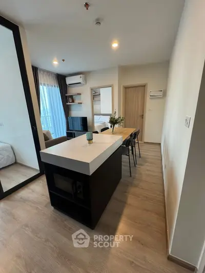 Fully furnished 2 bedrooms, 1 bathroom condo for rent with a floorsize of 35 squaremeters, located on the 25th floor, at Nue District R9 building, in the popular Huai Khwang district near MRT Phra Ram 9 and near ARL Makkasan. Please contact us to schedule a viewing.
