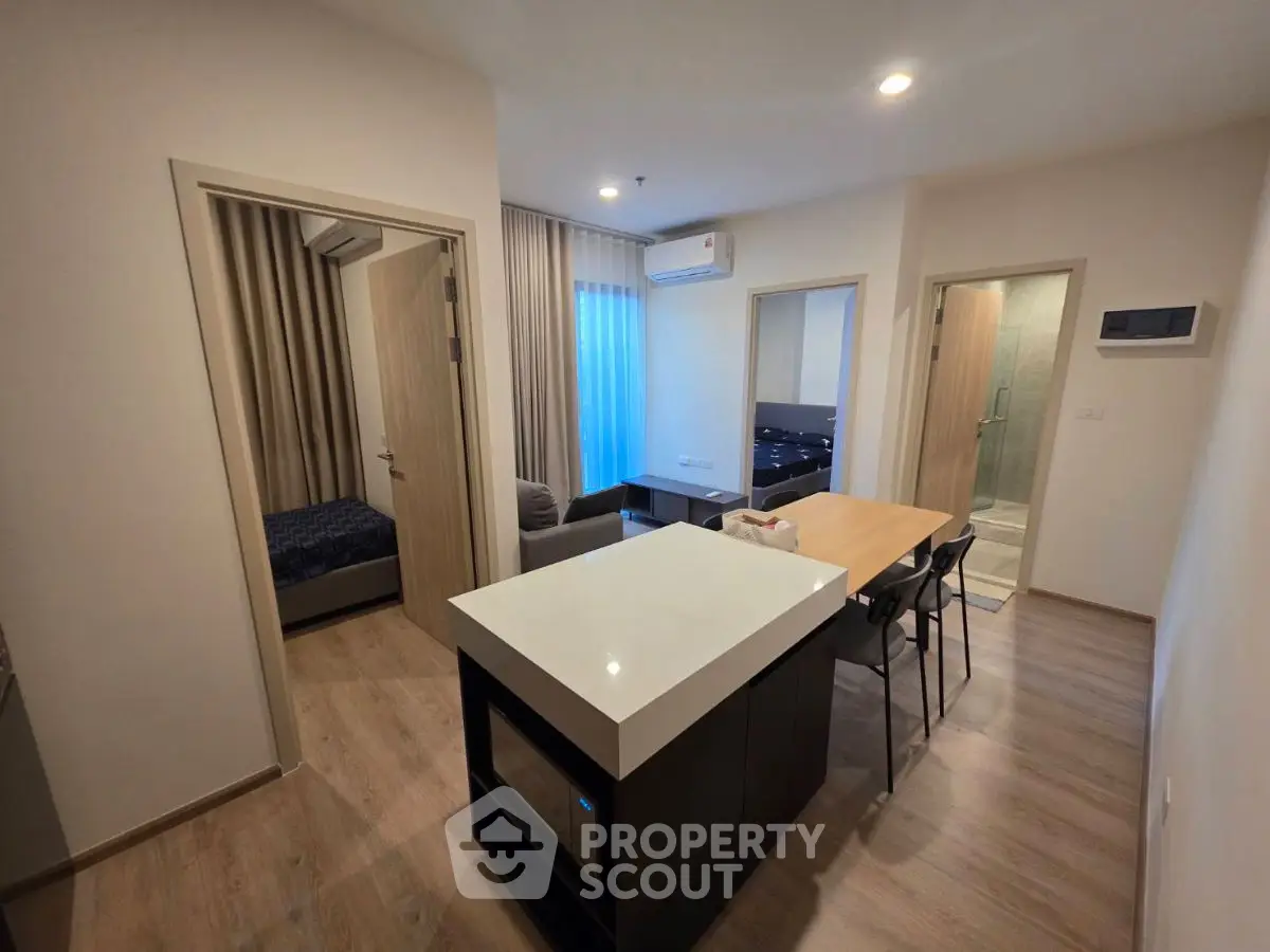 Fully furnished 2 bedrooms, 1 bathroom condo for rent with a floorsize of 35 squaremeters, located on the 4th floor, at Nue District R9 building, in the popular Huai Khwang district near MRT Phra Ram 9 and near ARL Makkasan. Please contact us to schedule a viewing.