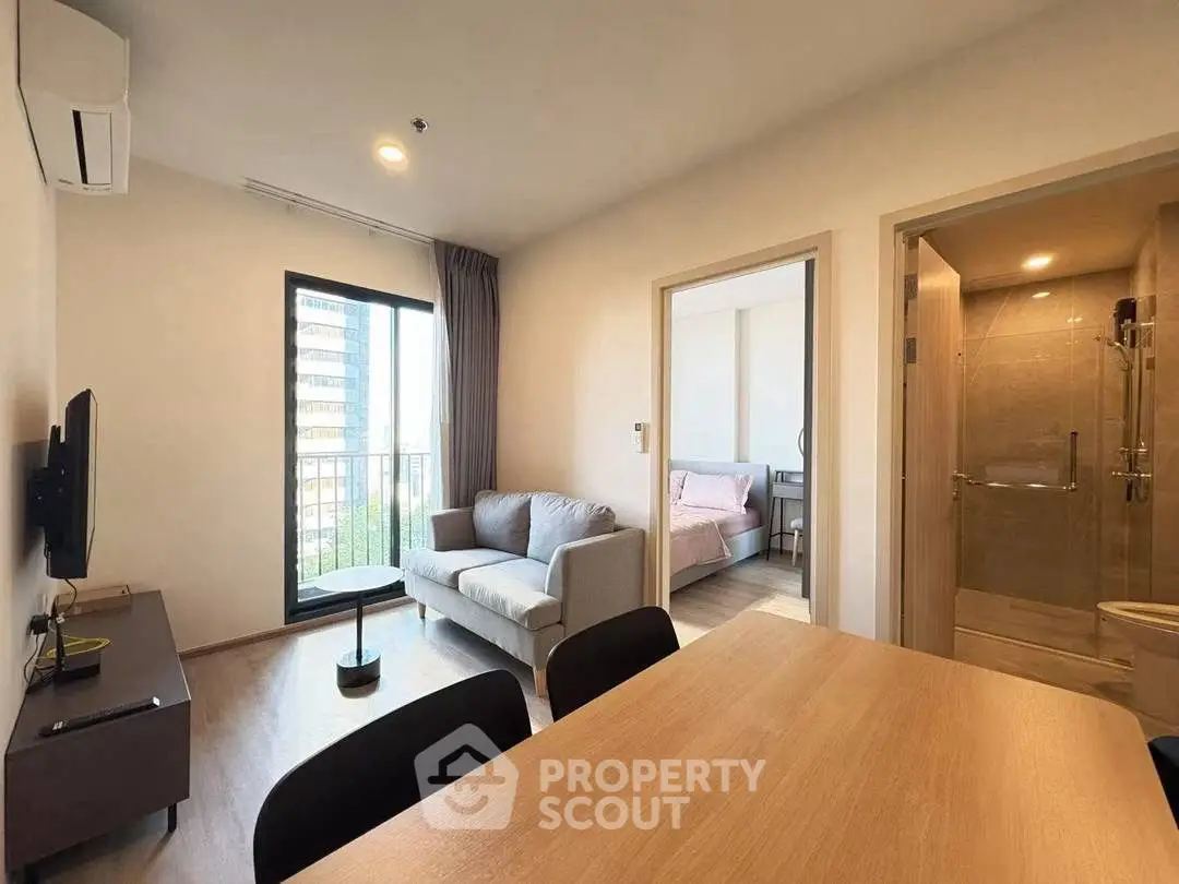 Fully furnished 2 bedrooms, 1 bathroom condo for rent with a floorsize of 35 squaremeters, located on the 12th floor, at Nue District R9 building, in the popular Huai Khwang district near MRT Phra Ram 9 and near ARL Makkasan. Please contact us to schedule a viewing.